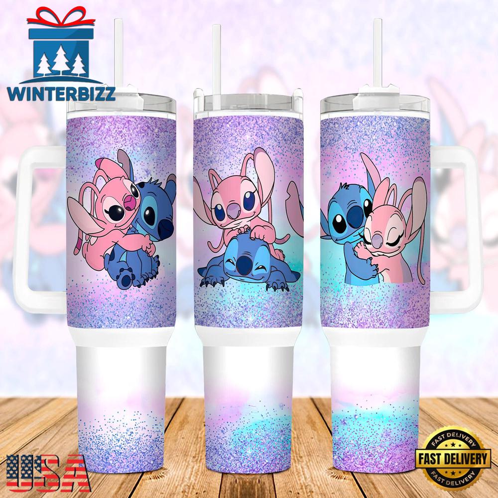 Photos Of Valentines Stitch Disney Stainless Steel Tumbler 40Oz With Handle , Valentine’s Gift For Lovers