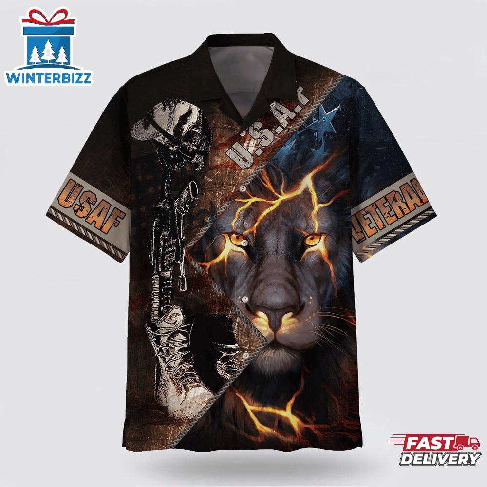 Photos Of Veteran Lion U.S.A.F Veteran Black Hawaiian Shirt