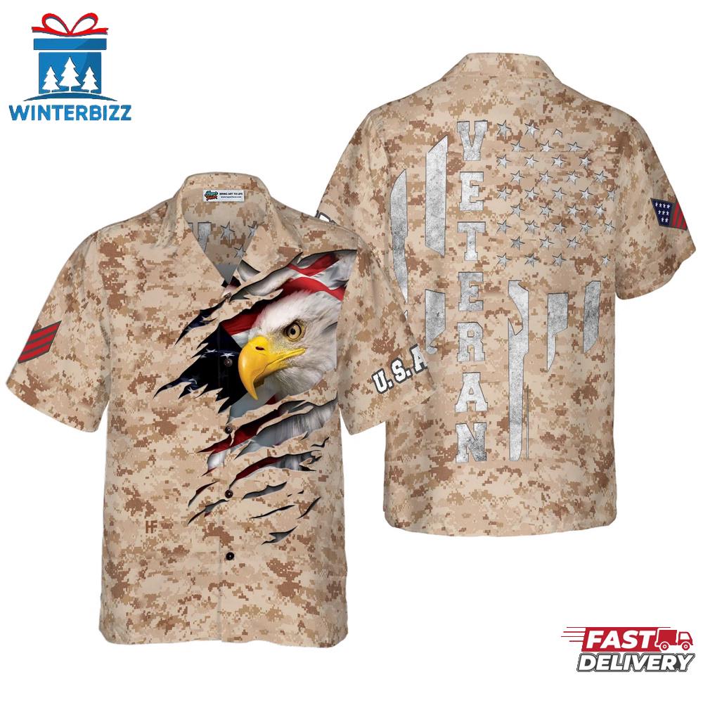 Photos Of Veteran Proud Eagle Camouflage Hawaiian Shirt