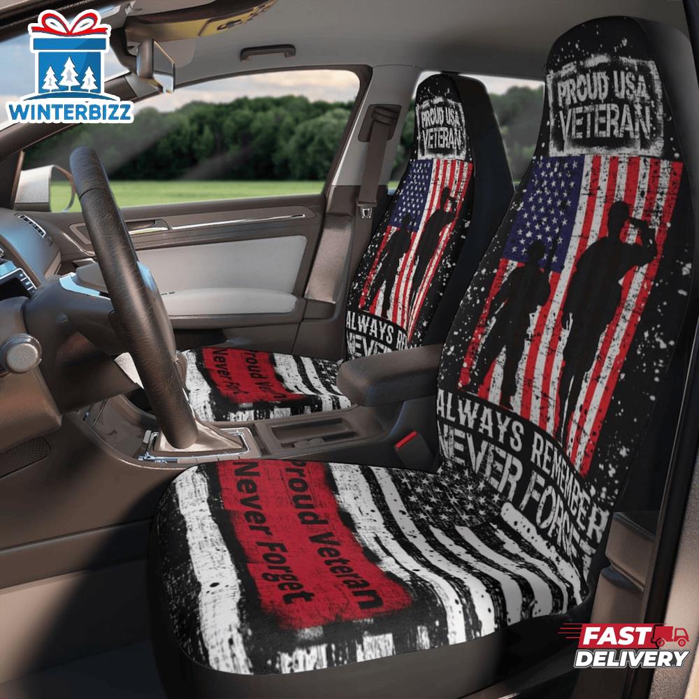 Photos Of Veteran Proud USA Veteran Always Remember Never Forget Black White Car Seat Covers Memorial Seat Cover Decor